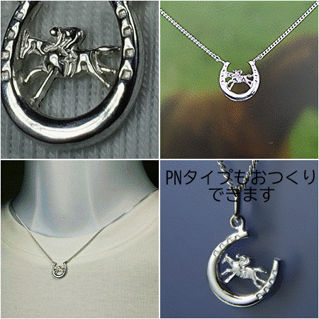 馬蹄の中に、疾走するウマとジョッキーをセットしました。 競馬ファンの為のペンダントです。 *素材:シルバー950 チェーンは925シルバー *馬蹄 サイズ:11X11o、鎖:40/45p *チェーン=45pまで、御希望の長さをショッピングカートの メッセージ欄にご記入ください。