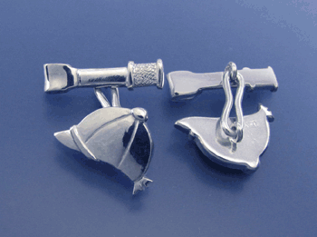 ヘルメットと鞭がモチーフのなんとも可愛らしいカフス! この遊び心がいっぱいにあふれる可愛らしさは、 大人の方にこそぜひ着けていただきたいと思います。 仕事もできてプライベートも思いっきり楽しむ・・・ これ1つでそんな余裕さえ感じさせます。